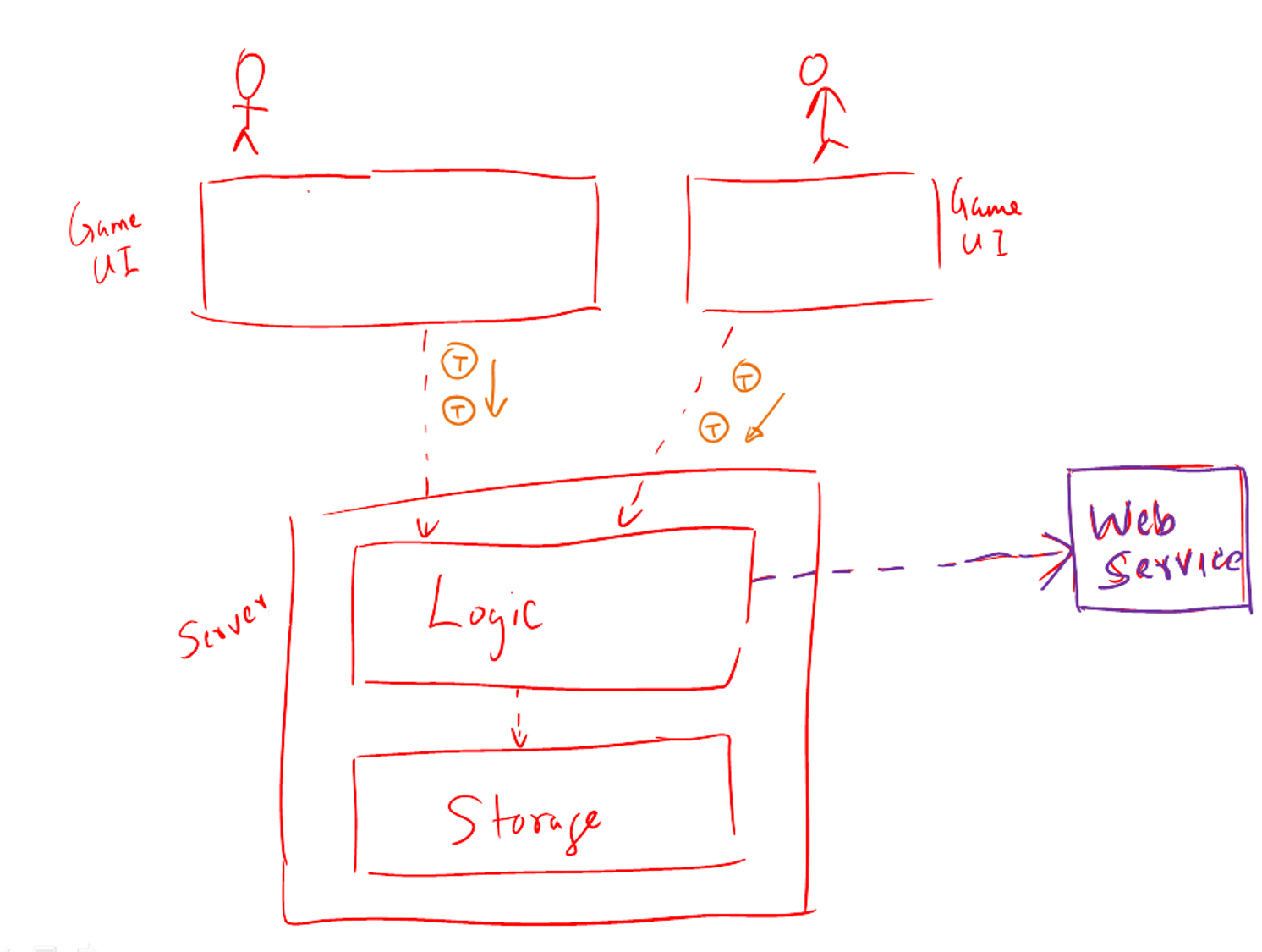 GUI: Graphical user interfaceTextUi: Textual user interfaceATD: An automated test driver used for testing the game logicLogic: computation and logic of the gameStore: storage and retrieval of game data (high scores etc.)The architecture is typically designed by the software architect, who provides the technical vision of the system and makes high-level (i.e. architecture-level) technical decisions about the project.