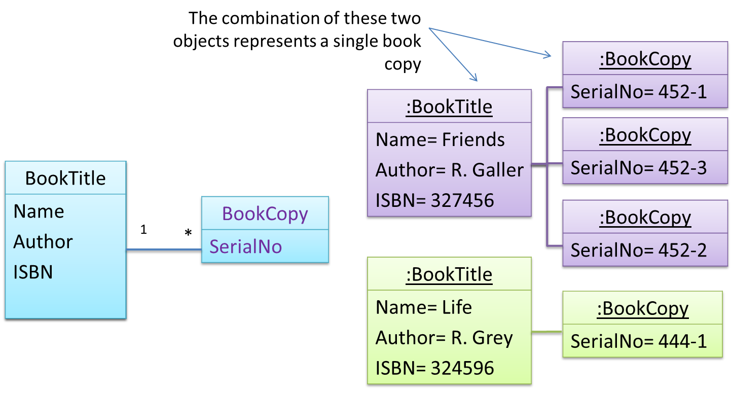 Take for example the problem of representing books in a library. Assume that there could be multiple copies of the same title, bearing the same ISBN number, but different serial numbers.