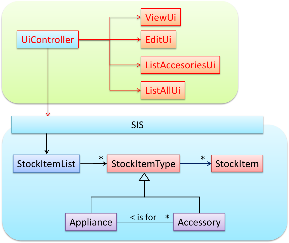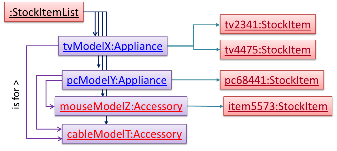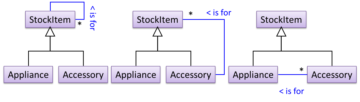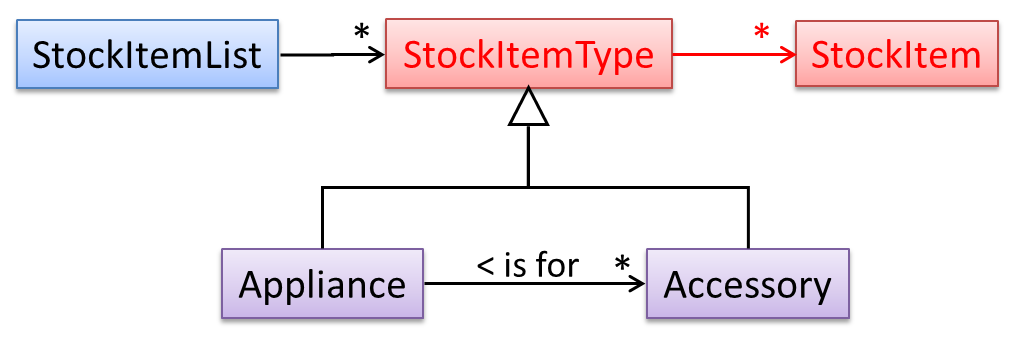 The latter seems more suitable because it can handle both appliances and accessories the same way. Next, an abstraction occurrence pattern is applied to keep track of StockItems.