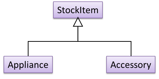 A StockItem can be an Appliance or an Accessory.
