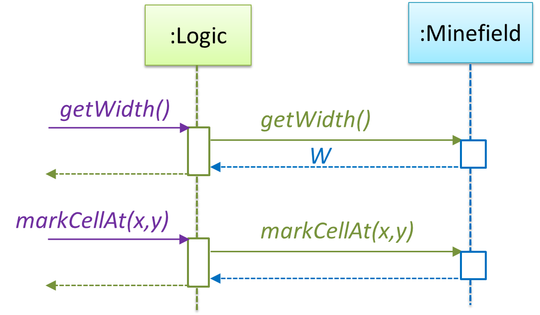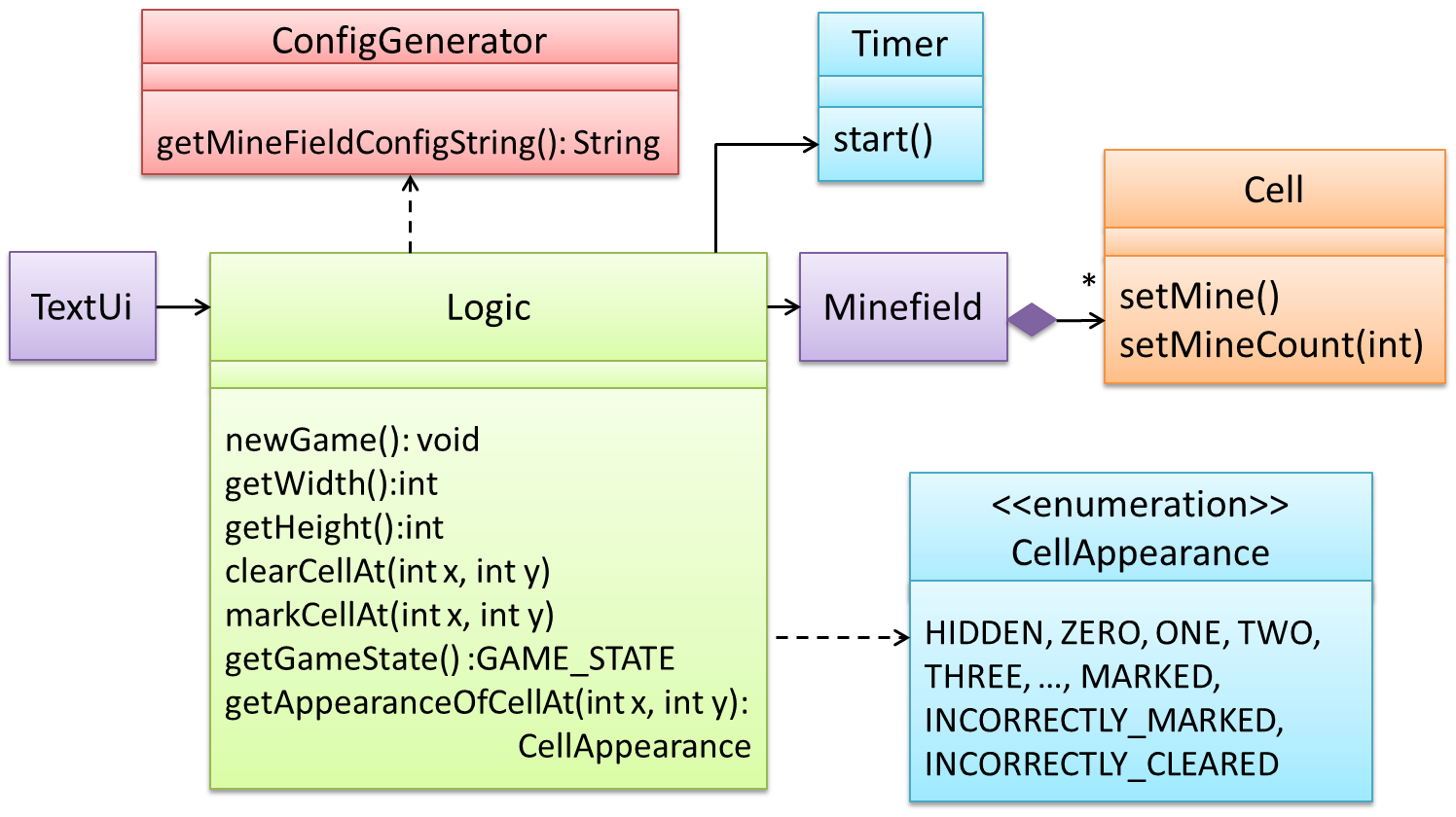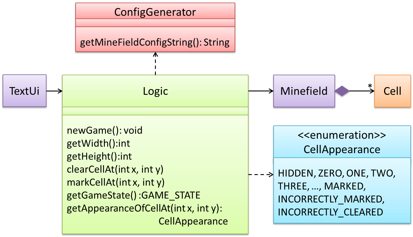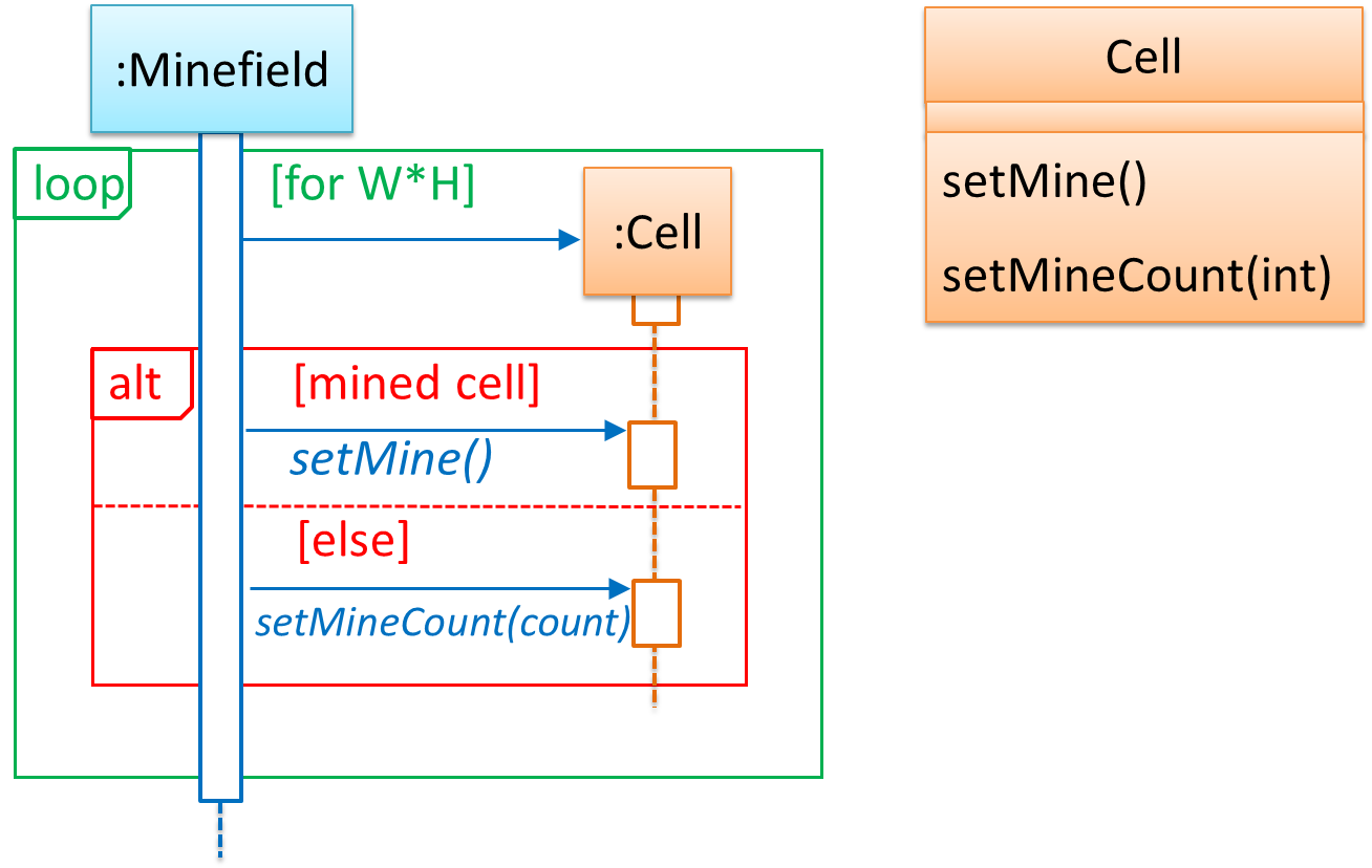 The above diagram assumes that W and H are the only information TextUi requires to display the minefield to the Player. Note that there could be other ways of doing this.
