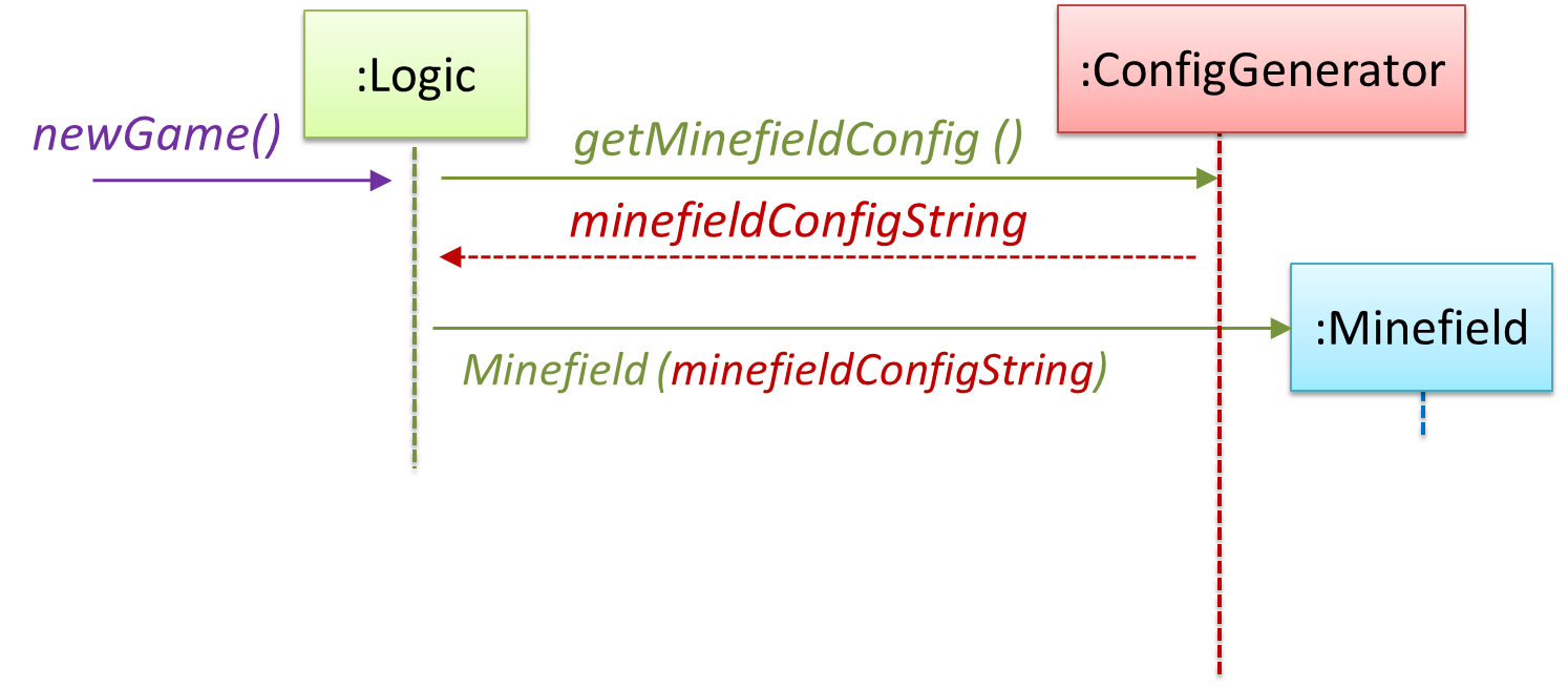 Now, let us look at what other objects and interactions are needed to support the newGame() operation. It is likely that a new Minefield object is created when the newGame() method is called.