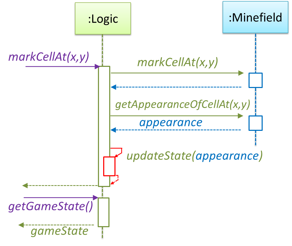 Here’s the SD for option 2. Here, assume that the game state is updated after every mark/clear action.
