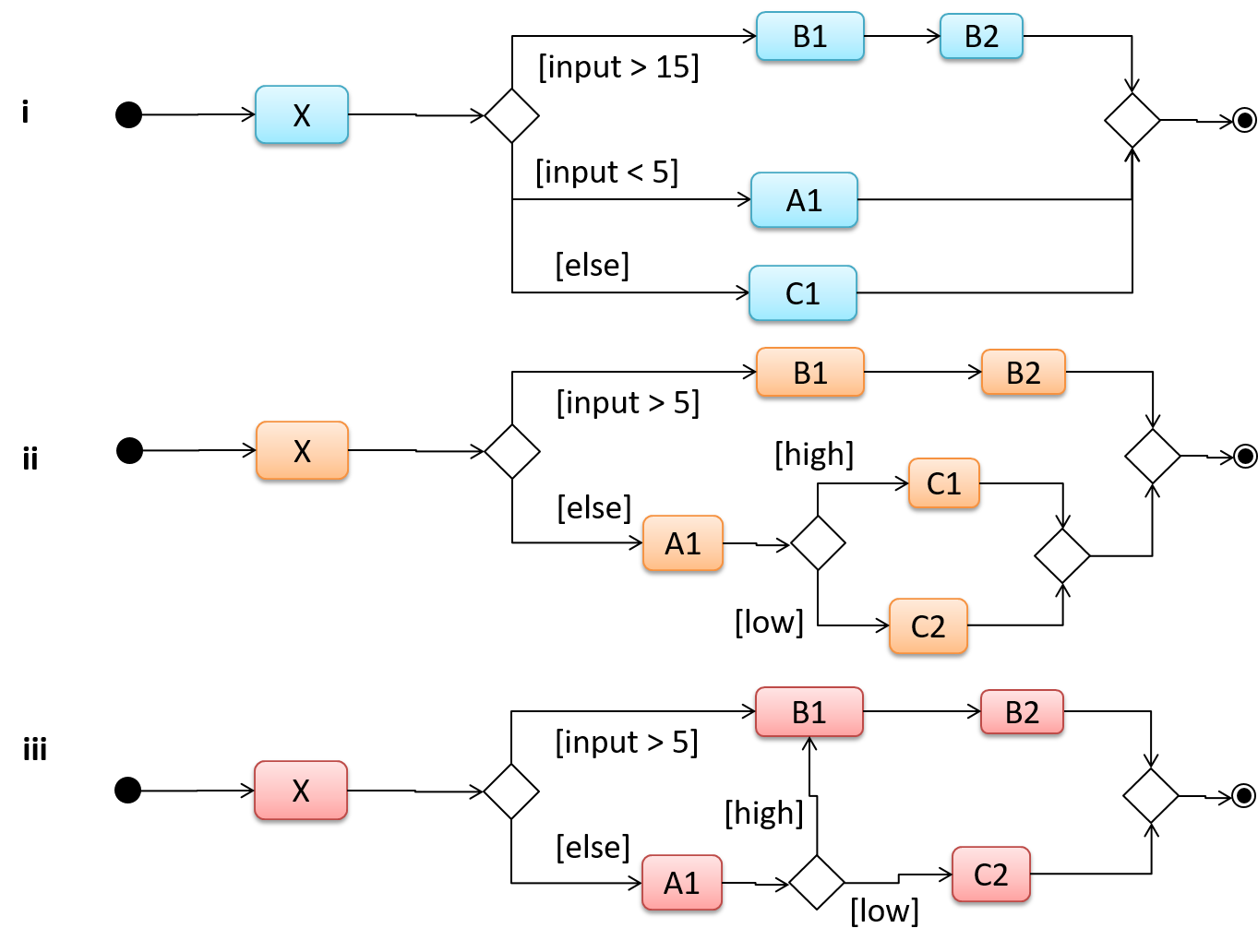 Which of these activity diagrams use the correct UML notation?