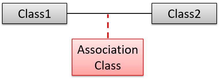 Association classes are denoted as a connection to an association link using a dashed line as shown below.