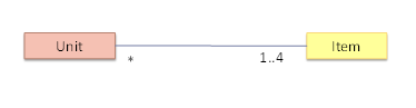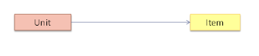 Explanation: The diagram indicates that Unit object should know about the Item object. In the implementation, the Unit object will hold a Unit object in one of its variables.