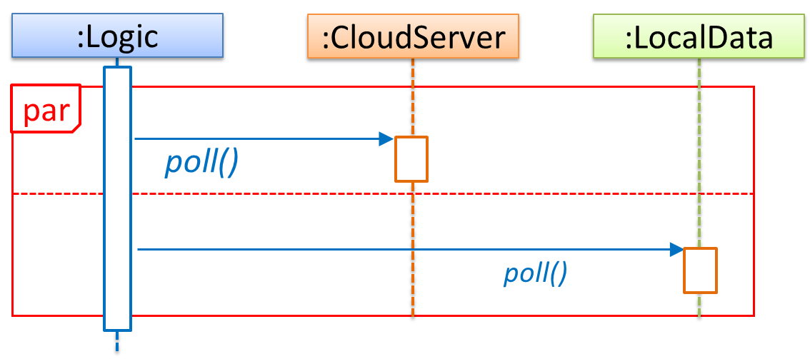 💡 If you show parallel paths in a sequence diagram, the corresponding Java implementation is likely to be multi-threaded because a normal Java program cannot do multiple things at the same time.